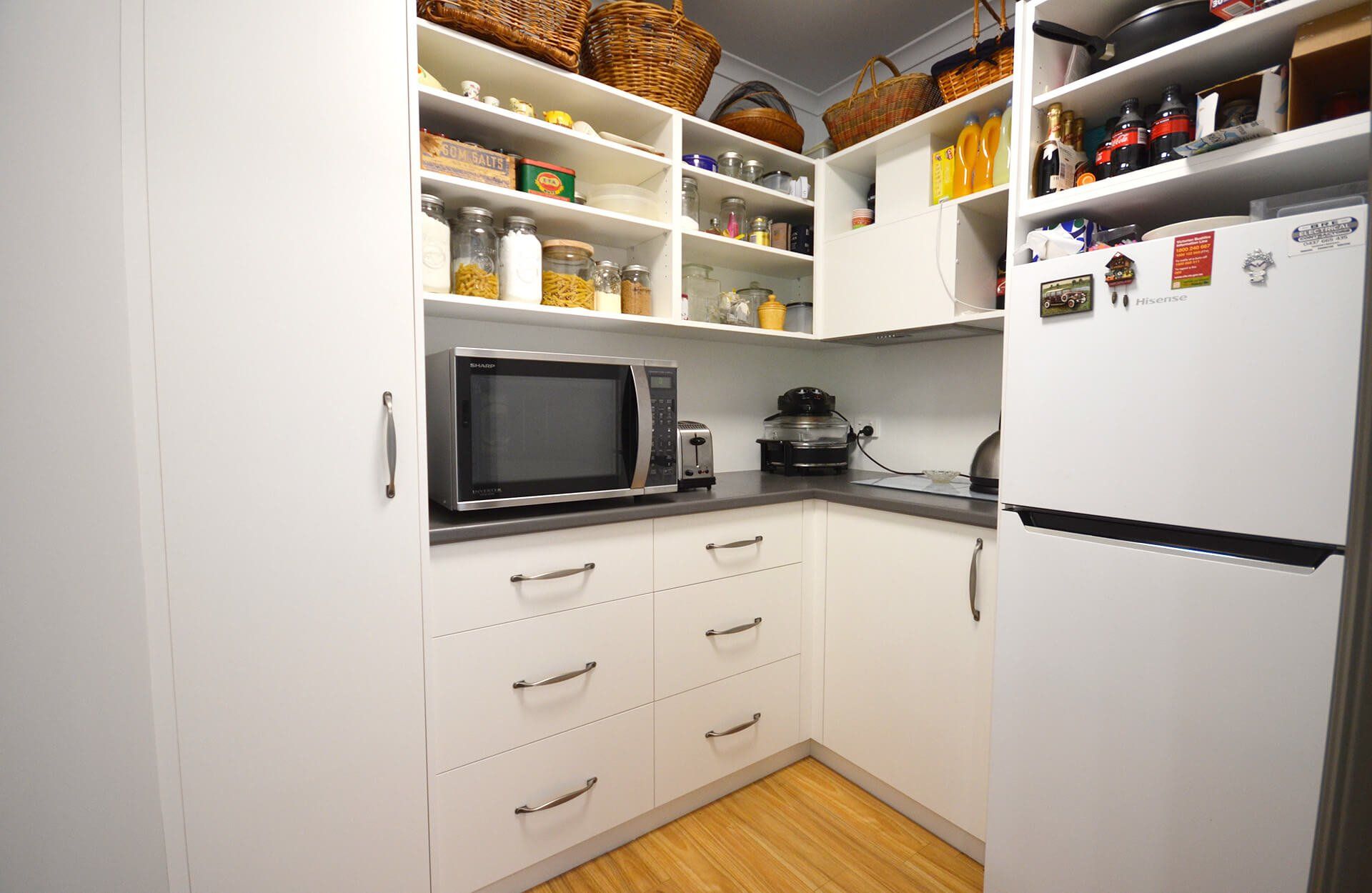 We can handle anything from a full kitchen to laundry cabinetry, walk in robes to bathroom vanities.